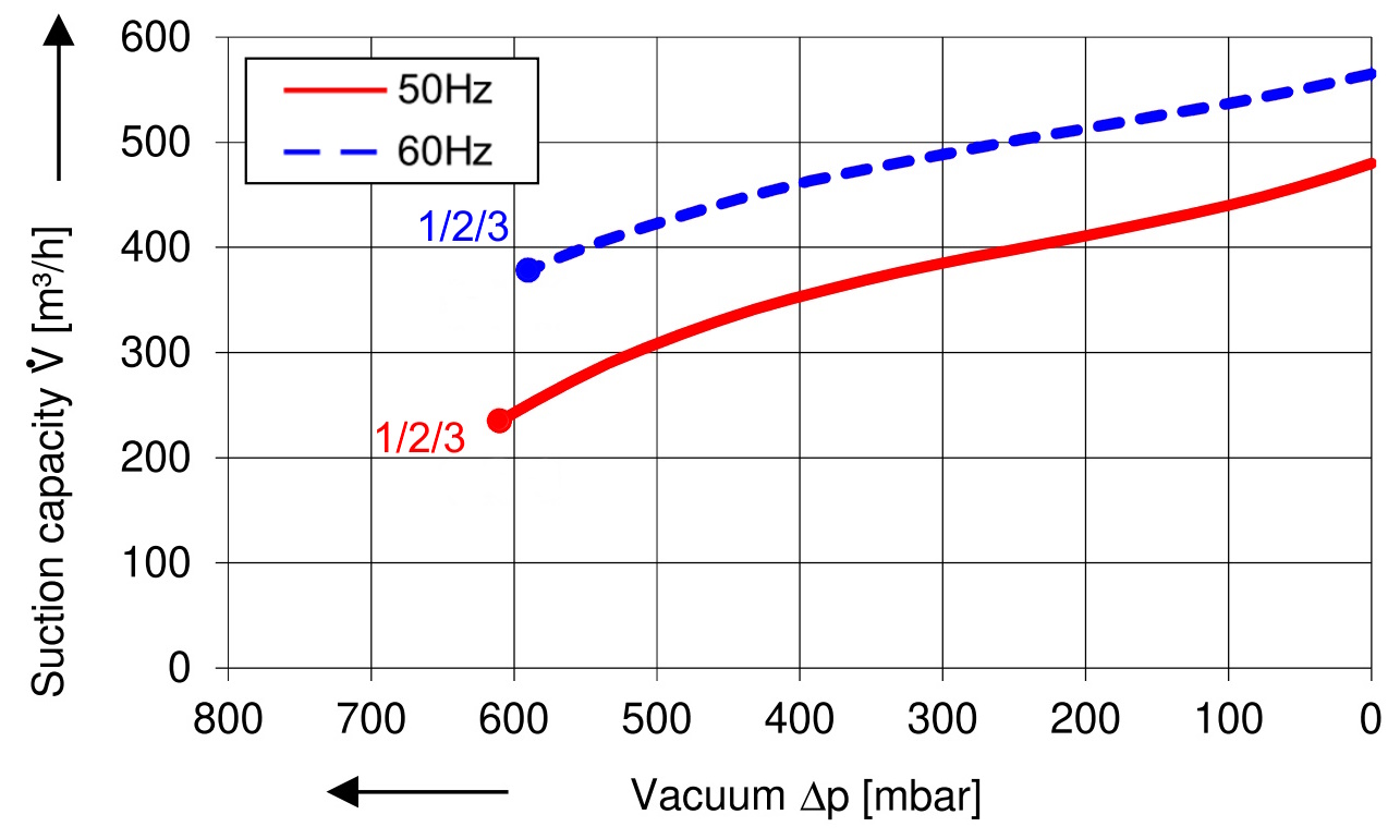 3-traps hogedruk-zijkanaalcompressor met de volgende technische specificaties bij 50 Hz: