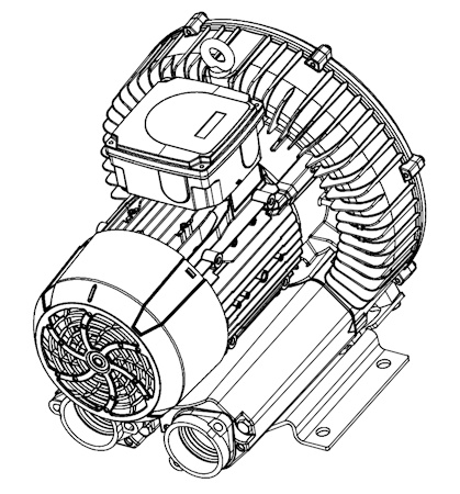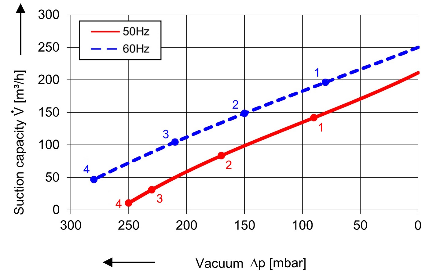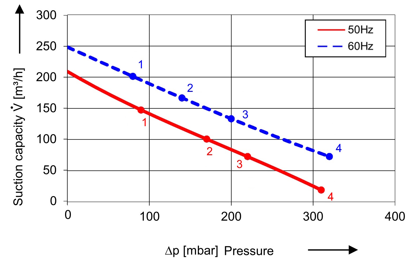 1-traps zijkanaalventilator met de volgende technische specificaties bij 50 Hz: