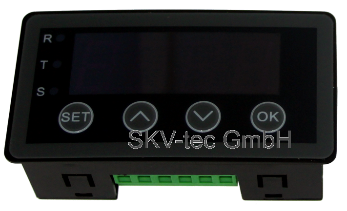 Het display heeft twee npn uitgangen met een maximaal vermogen van 100 mA. Deze kunnen vrij worden ingesteld als onderbreking of het maken van contacten, instelpunt en gewenste hysteresis.