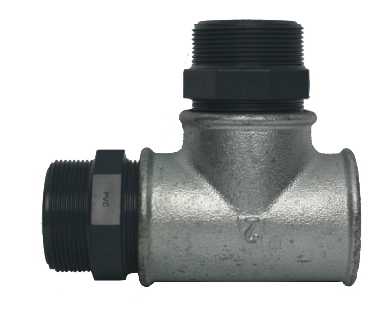 | Materiaal: | Gegalvaniseerd smeedbaar gietijzer (T-verbinding) / PVC-U (dubbele nippel en reductie) |