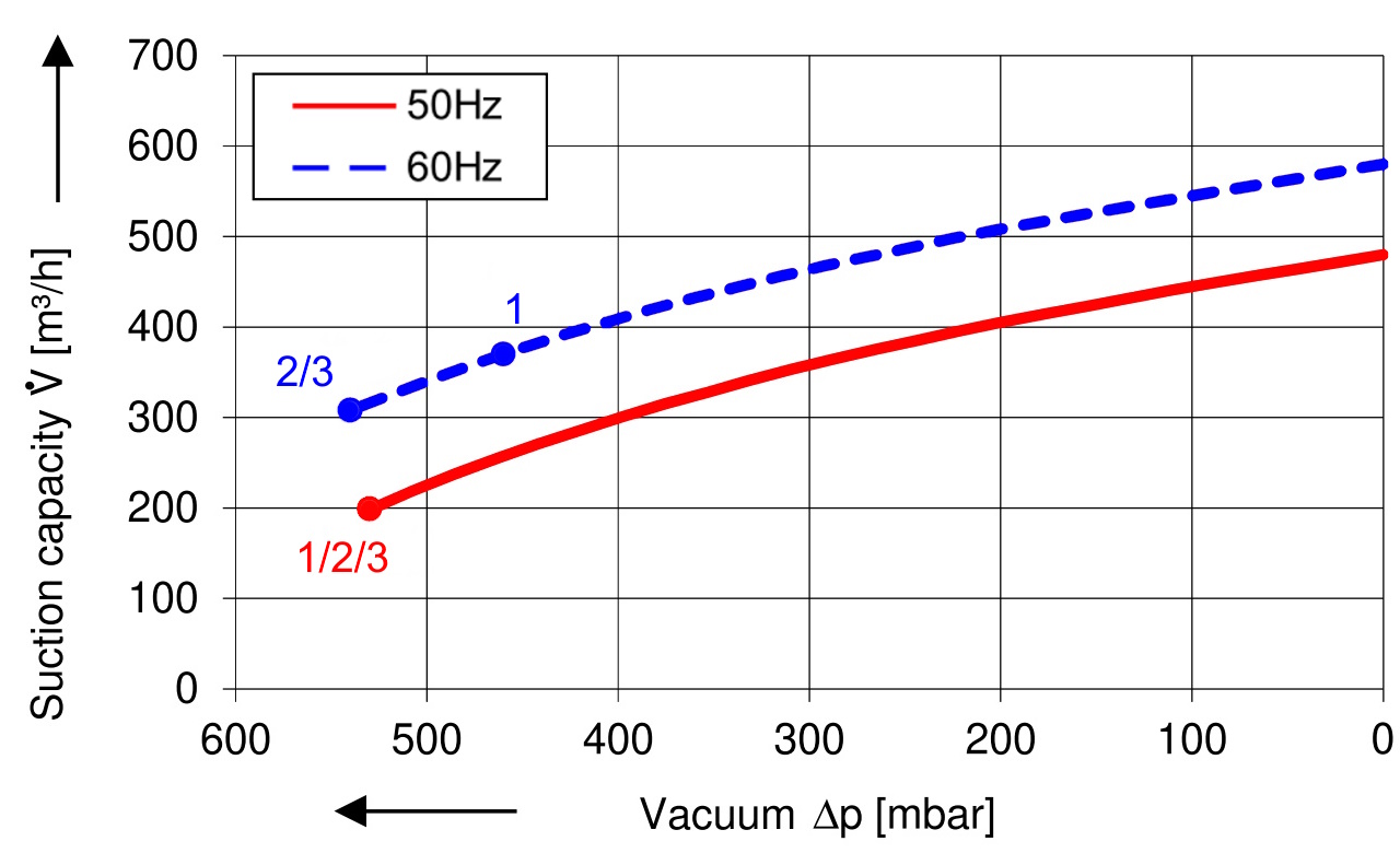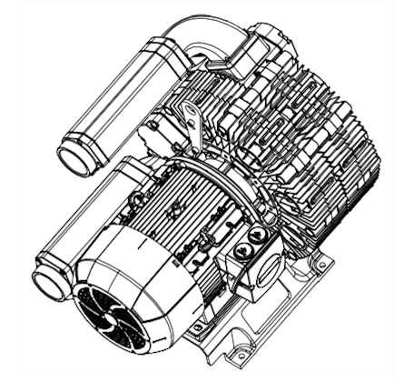 Double stage high pressure ring blower with following specifications for 50 Hz: