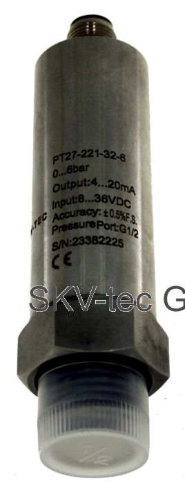 with M12 plug, A coded 4-pin. Pressure range 0 to 6 bar. 4 to 20 mA signal. G 1/2" medium connection.