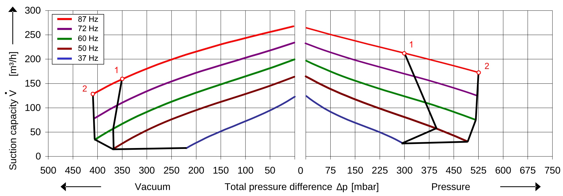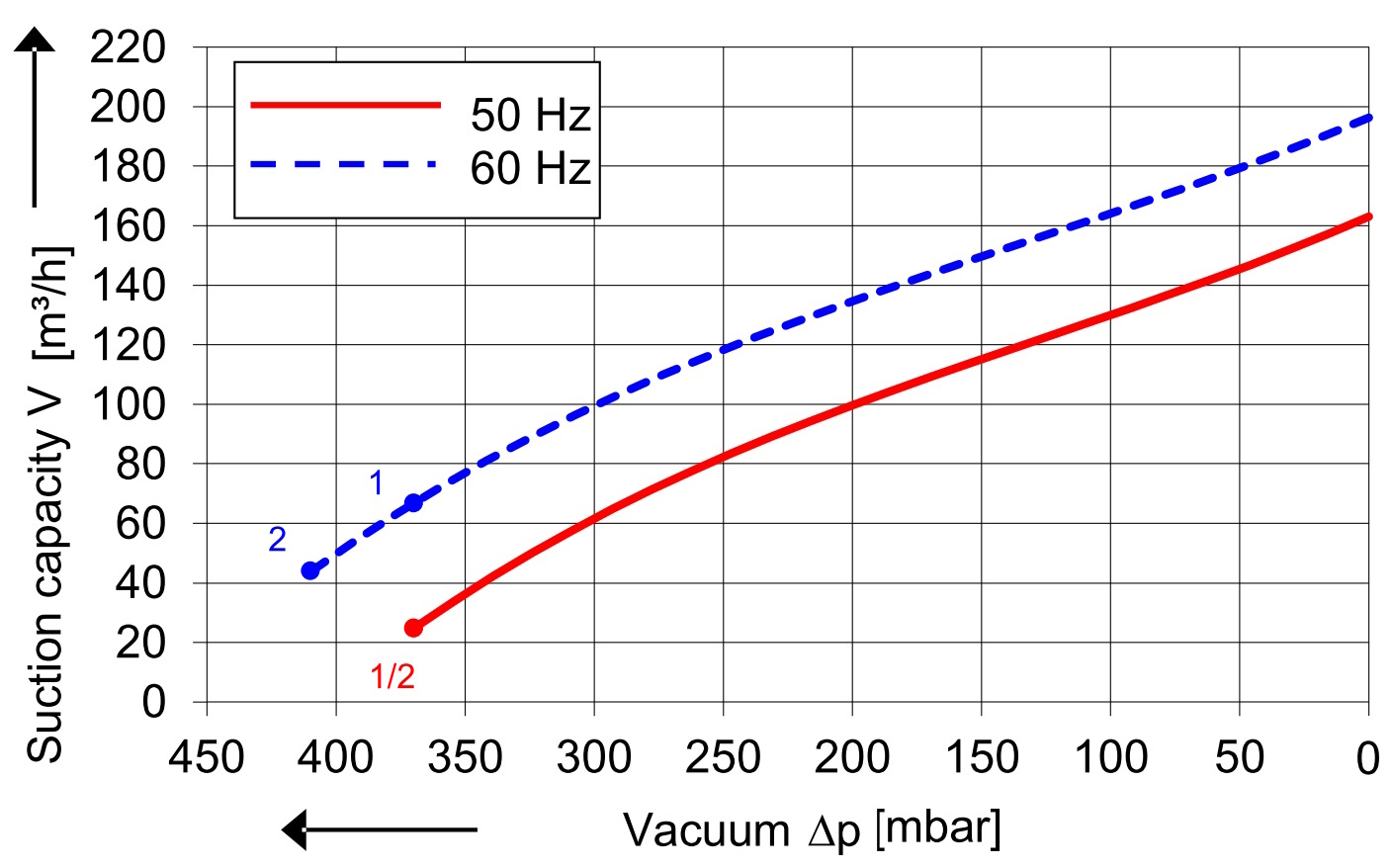 suitable for: Side channel blowers and rotary vane vacuum pumps Function: Most of our side channel blowers (see restrictions) can be operated with frequency converters.In this way depending on the model the possible operating points can be expanded by varying the frequency. technical data: Power: 4,0 kW (400 V) rated loadability: 9,5 A Features: - various control options can be selected (see options)- fast and easy setup- EMV acc. DIN-EN-61800-3: C2- protection class: IP 65 (>11 kW: IP 55)- cooling: passive cooled (>11 kW: active cooled)- several protection features (see datasheet)- input for bimetal switch- built-in ethernet and fieldbus options (on request), Modbus RTU included Design: Frequency converter is only supplied installed on the side channel blower Options: - Standard: with integrated potentiometer without display- MMI-Option: with integrated potentiometer and display- Keyboard: with integrated membrane keyboard without display (on request) Attention: only the SKV models with 230/400V (motor code -XX6) can be controlled from 37 – 87 Hz! the SKV models with 400/690V ( motor code -XX7) can only be controlled from 37 – 60 Hz (with loss of performance)! the operation of frequency converters is only permissible with all-current-sensitive current circuit switches (see accessories) Frequency inverters are special orders and therefore excluded from the return!