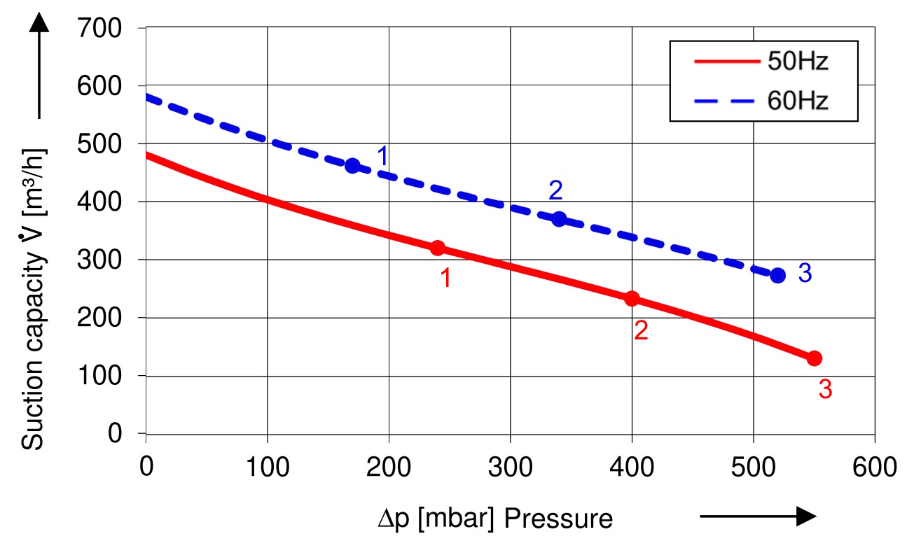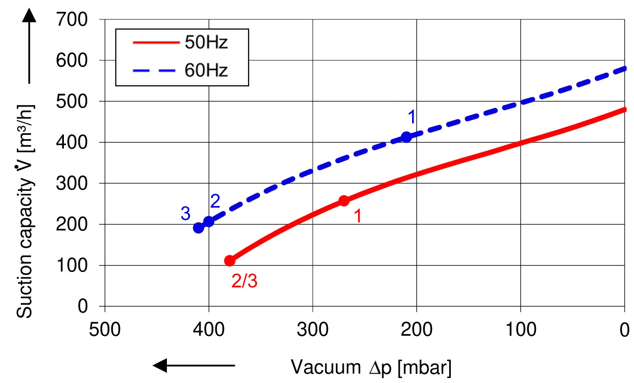 Single stage high pressure ring blower with following specifications for 50 Hz: