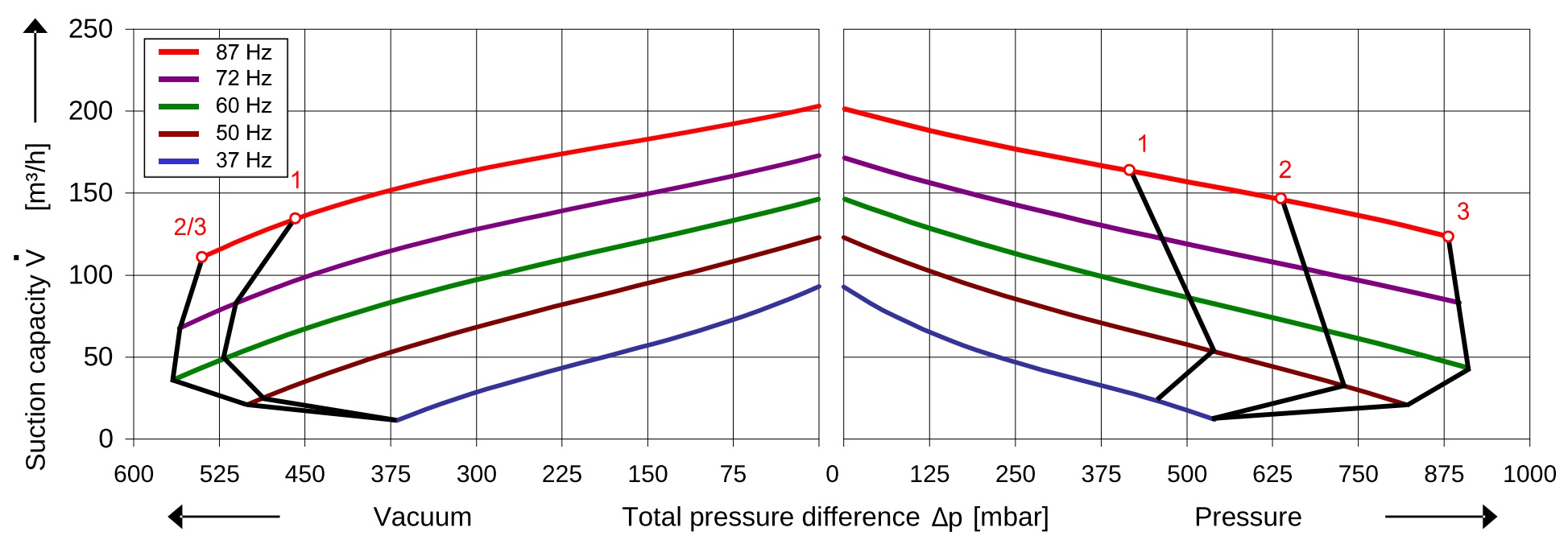 2-traps hogedruk-zijkanaalcompressor met de volgende technische specificaties bij 50 Hz: